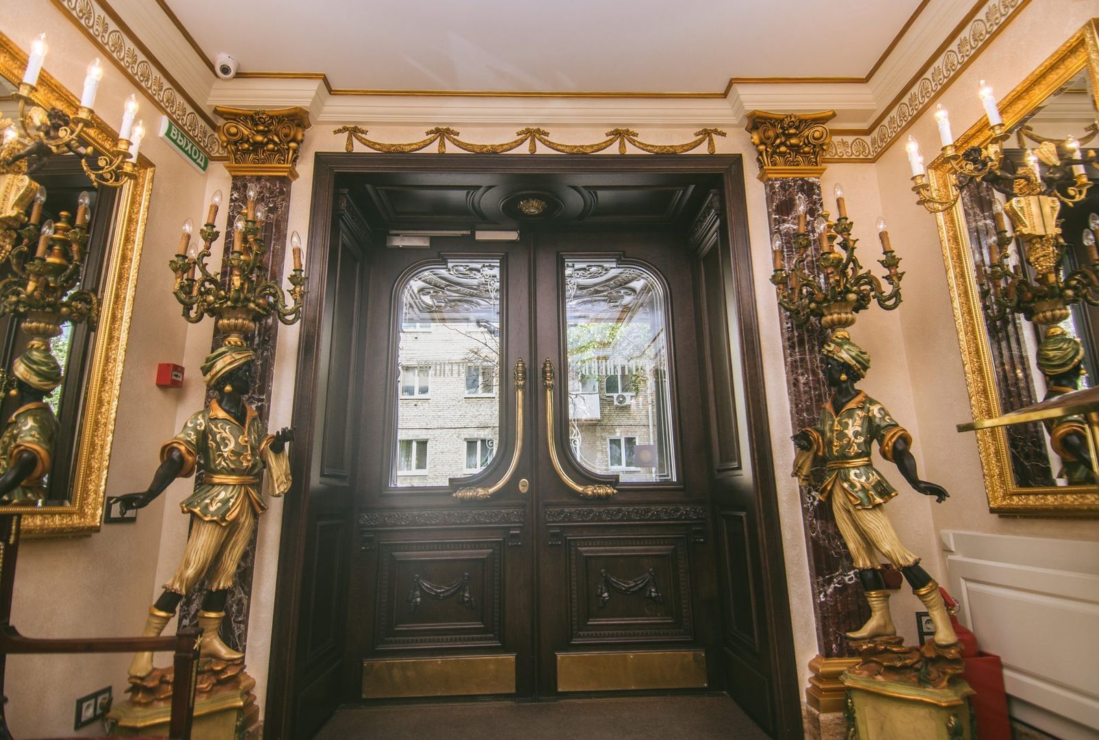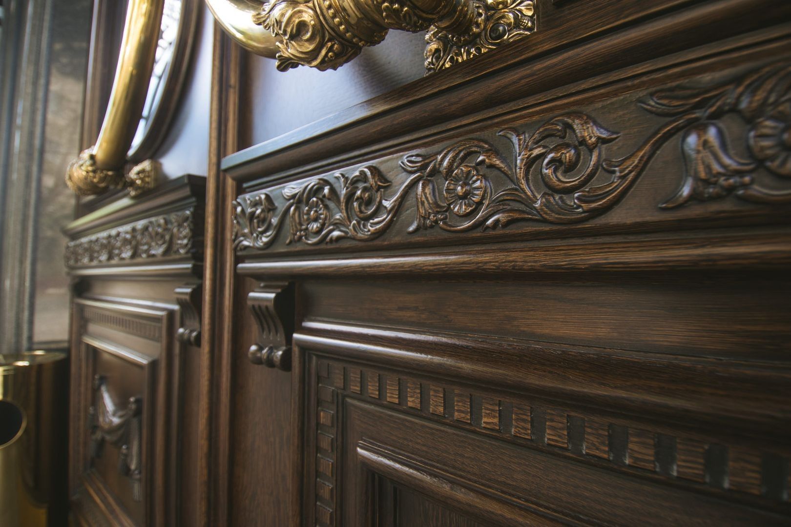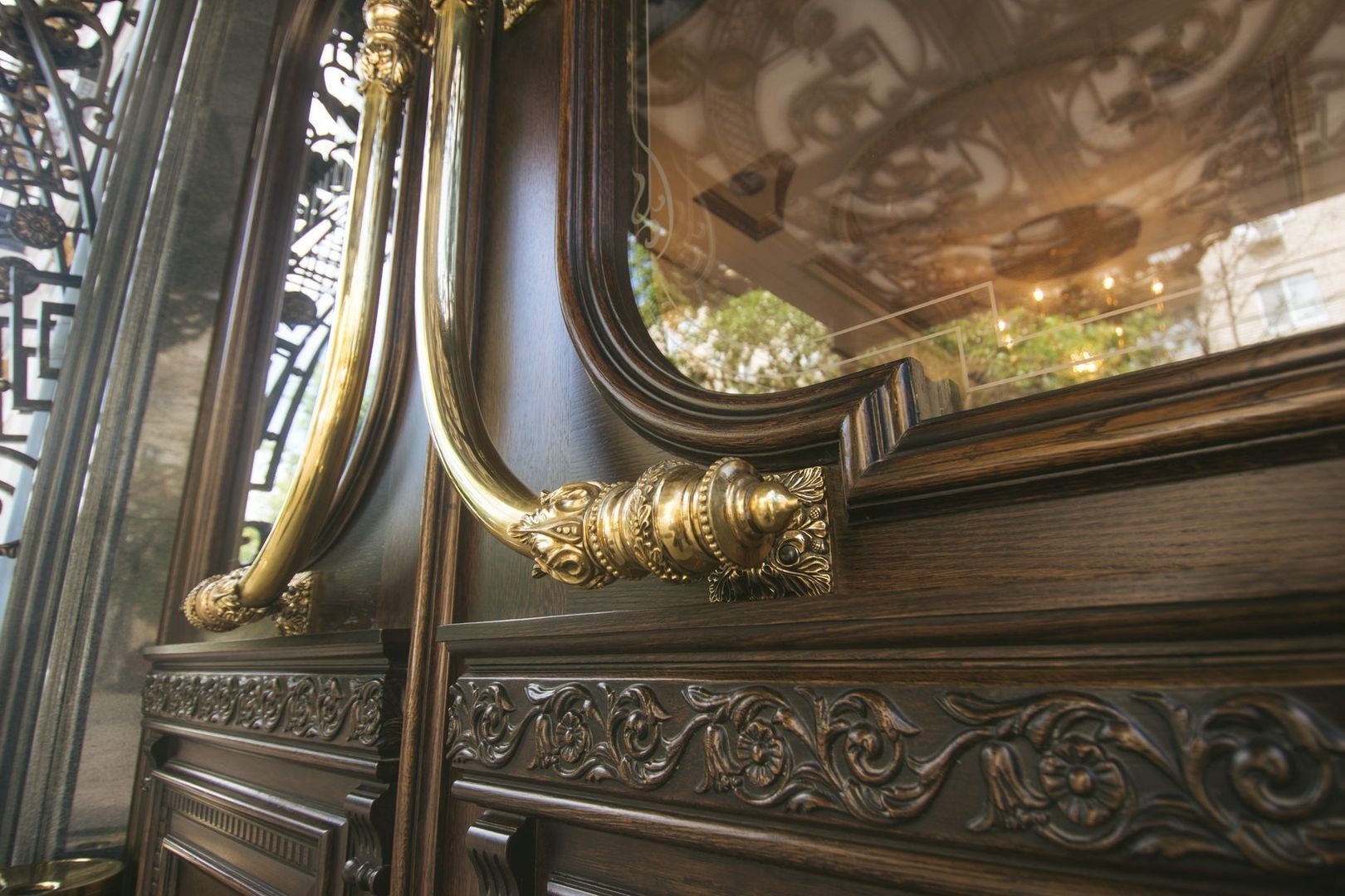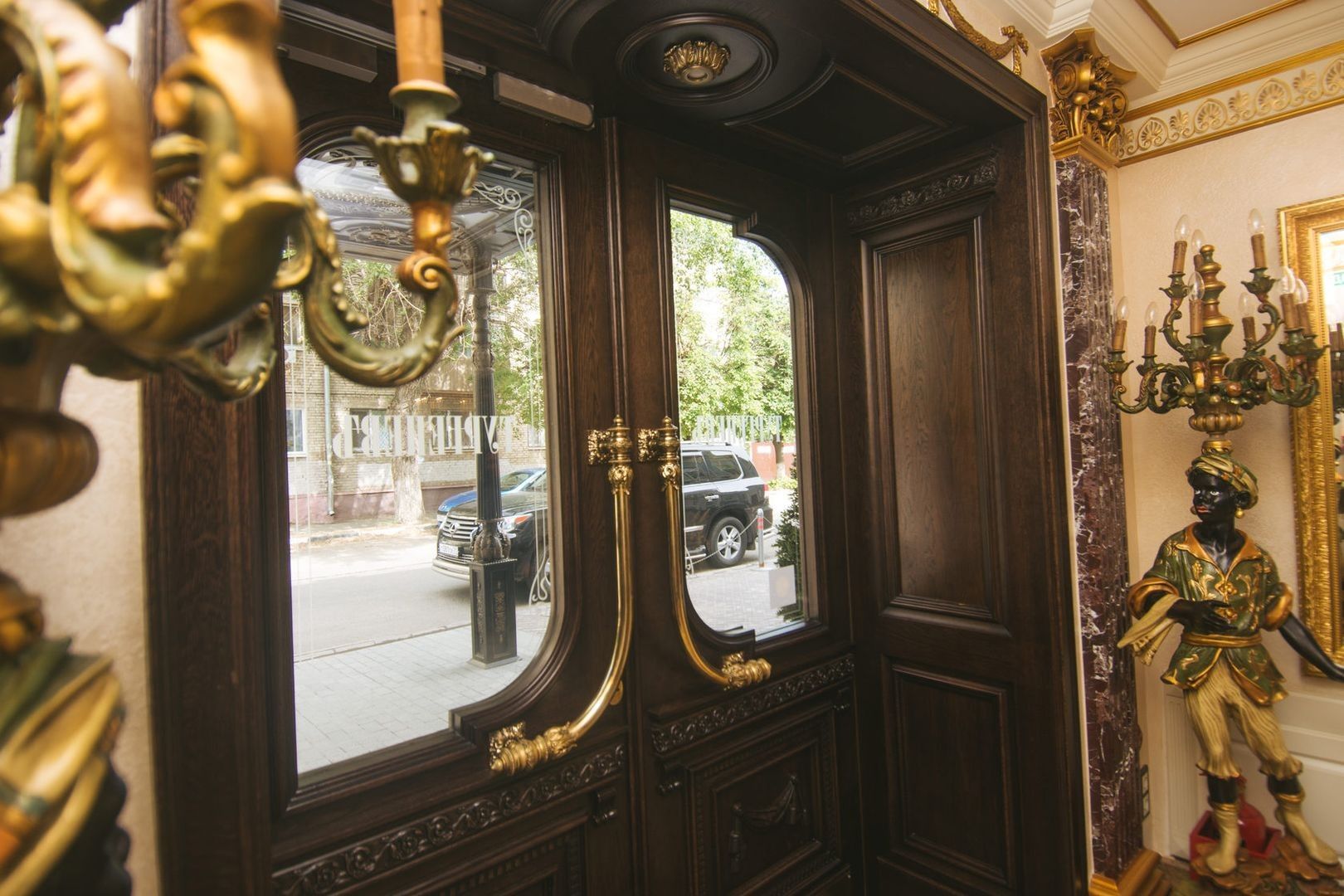 Великолепная дверь ручной работы украшает вход, в ресторан "ТургеневЪ"